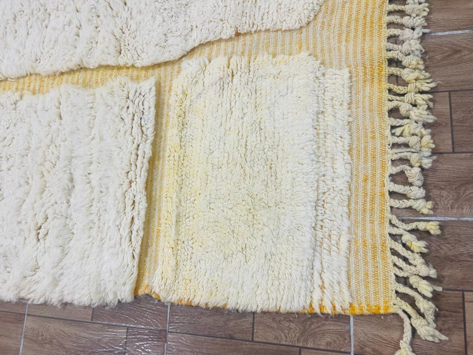 The rugs have tassels on both sides. You can ask for them to be cut down or taken away.